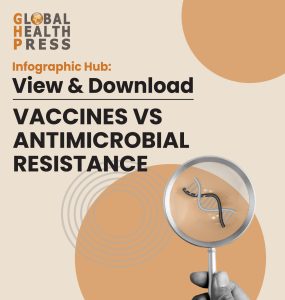 Download Infographic Overview This infographic shows how vaccines help fight antimicrobial resistance (AMR) by preventing infections before antibiotics are needed. It presents a simple causal chain: fewer infections →...